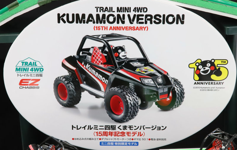 デビュー15年を迎えたくまモンをお祝いした トレイルミニ四駆仕様のスペシャルコラボマシンとなります。