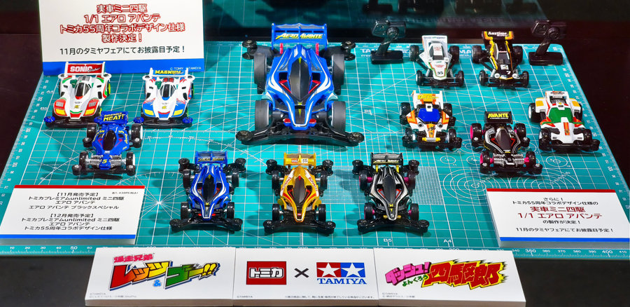 人気のミニ四駆マシンが一通り出揃ったことと、今回発表されたトミカ55周年コラボデザイン仕様のエアロアバンテを出すことで一旦ミニ四駆コラボは終了かと。