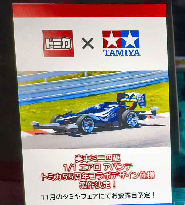また、タミヤフェア2025では前述したエアロアバンテ トミカ55周年コラボデザイン仕様の実車ミニ四駆がお披露目されます!