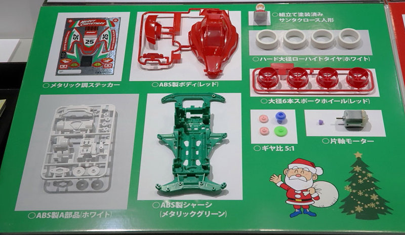 ミニ四駆サンタクロースはクリスマスをイメージした赤・白・緑のパーツ構成となっています。