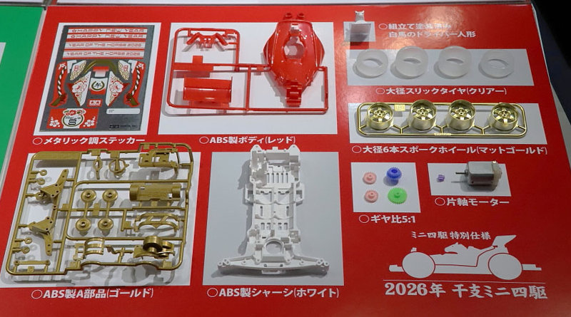 干支ミニ四駆「午年」は謹賀新年をイメージ?した めでたい色のパーツ構成となっています。