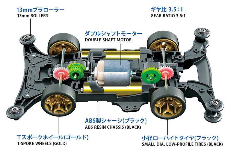 また、シャーシ名の最初にミッドシップのMが付くことから、MS・MAに続く3種類目の両軸シャーシとなります。