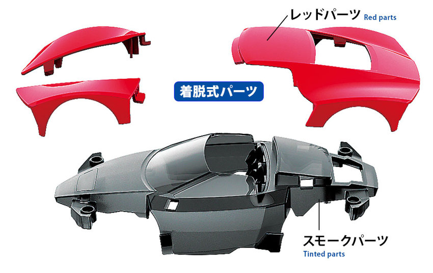 ※スモークパーツにボディキャッチ部分があるのでレッドパーツを取り外した状態でもシャーシとボディをしっかりと固定することが可能です。
