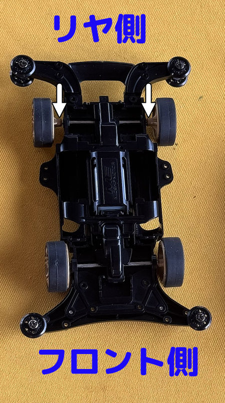 実践ではホイール軸が短い方で前後(フロント・リヤ)を統一させるレーサーが多く、本製品のホイールでフロント・リヤを統一させようとすると2キット分用意する必要があります。