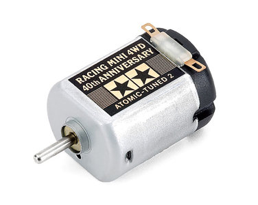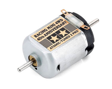 「1軸シャーシ用のアトミックチューン2モーター」と「2軸シャーシ用のアトミックチューン2モーターPRO」のレーサーミニ四駆40周年記念モデルのモーターとなります。